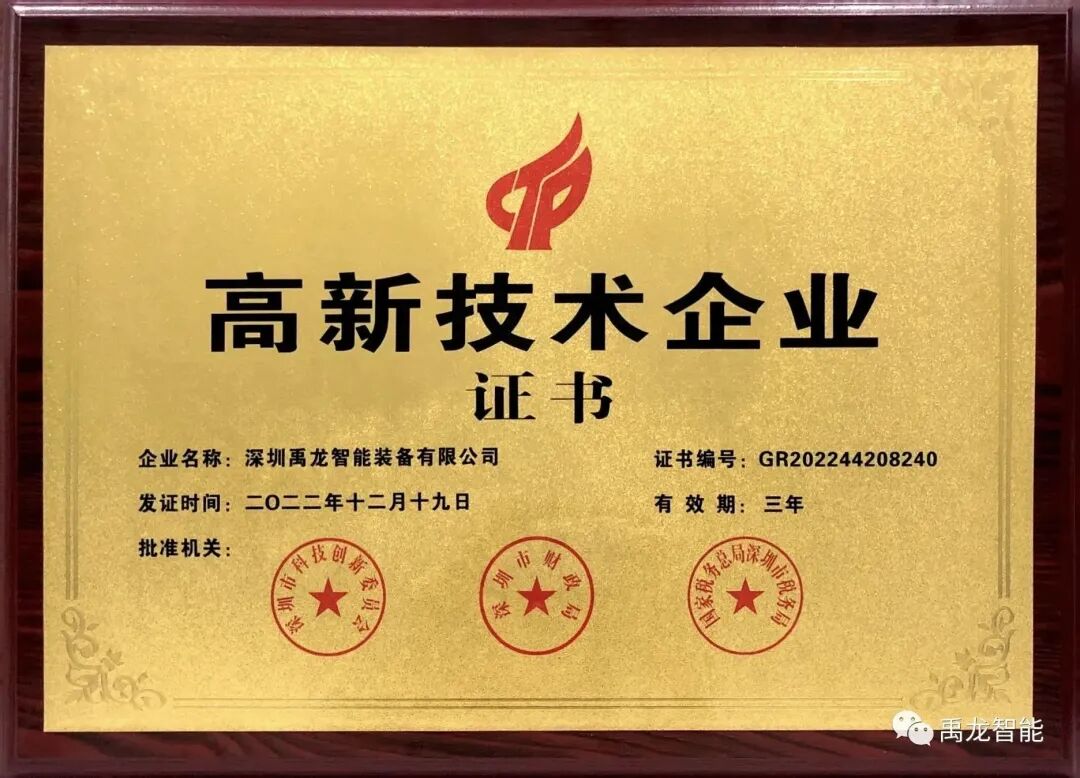 High-Tech Enterprise CertificationYulong Intelligent has received the "High-Tech Enterprise" certification jointly issued by the Shenzhen Sc...
